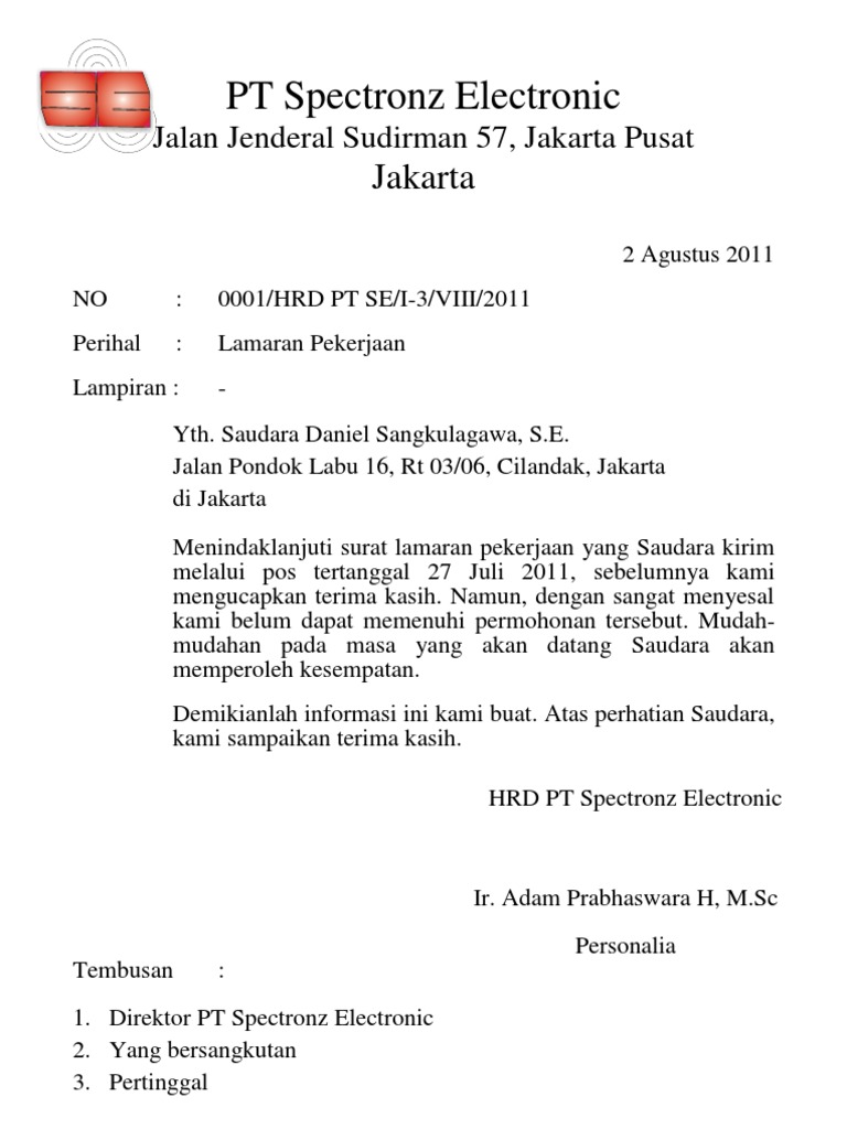 Contoh Surat Balasan Lamaran Kerja Pdf